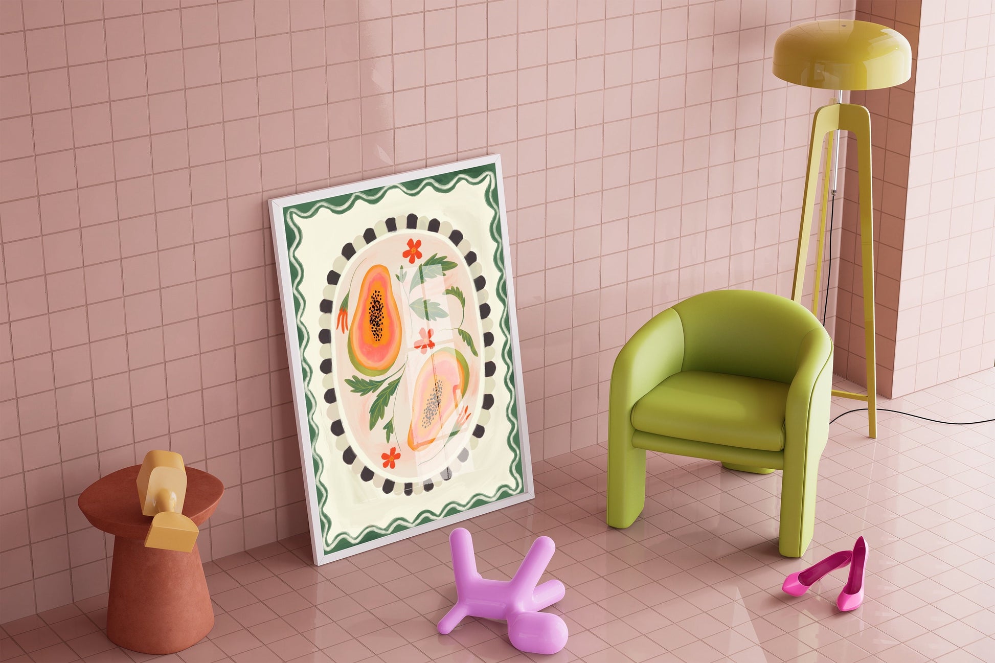 Papaya With Border | Unframed